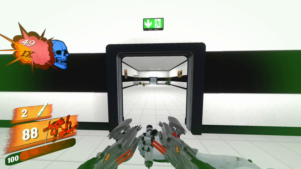 6. Левелдизайн чуть поправить надо. В сегменте, где нам выкидывают поп-ап с обучением о взрывных гвоздях - у нас враги, на которых мы должны технически эти взрывные гвозди испытать находятся мало того, что на возвышенности (мы не можем выстрелить в пол между ними, чтоб задеть их сплэшем) - так ещё стоят они в 3 метрах друг от друга, что не позволяет реализовать главную фичу взрывных гвоздей - сплэш урон от взрыва.